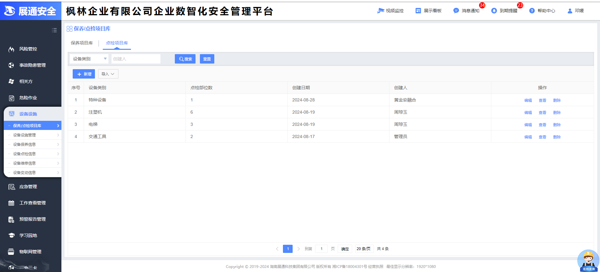 企業數智化安全管理平臺(俗稱企業端)匯集企業管理、風險管控、隱患管理、體系運行、危險作業、AI預警、AI識隱患、應急管理、預警動態、一會三卡、物聯網管理、相關方、設備設施、學習園地等功能于一體,旨在構建標準化、規范化、便捷化的管理流程,引導企業自主開展安全管理工作,建立健全全員安全生產責任制,全面提升企業安全管理數智化水平。