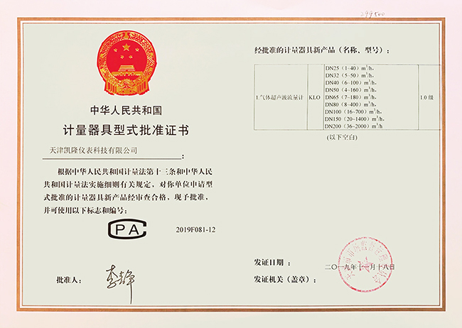 氣體超聲波流量計(jì)型式批準(zhǔn)證書(shū)
