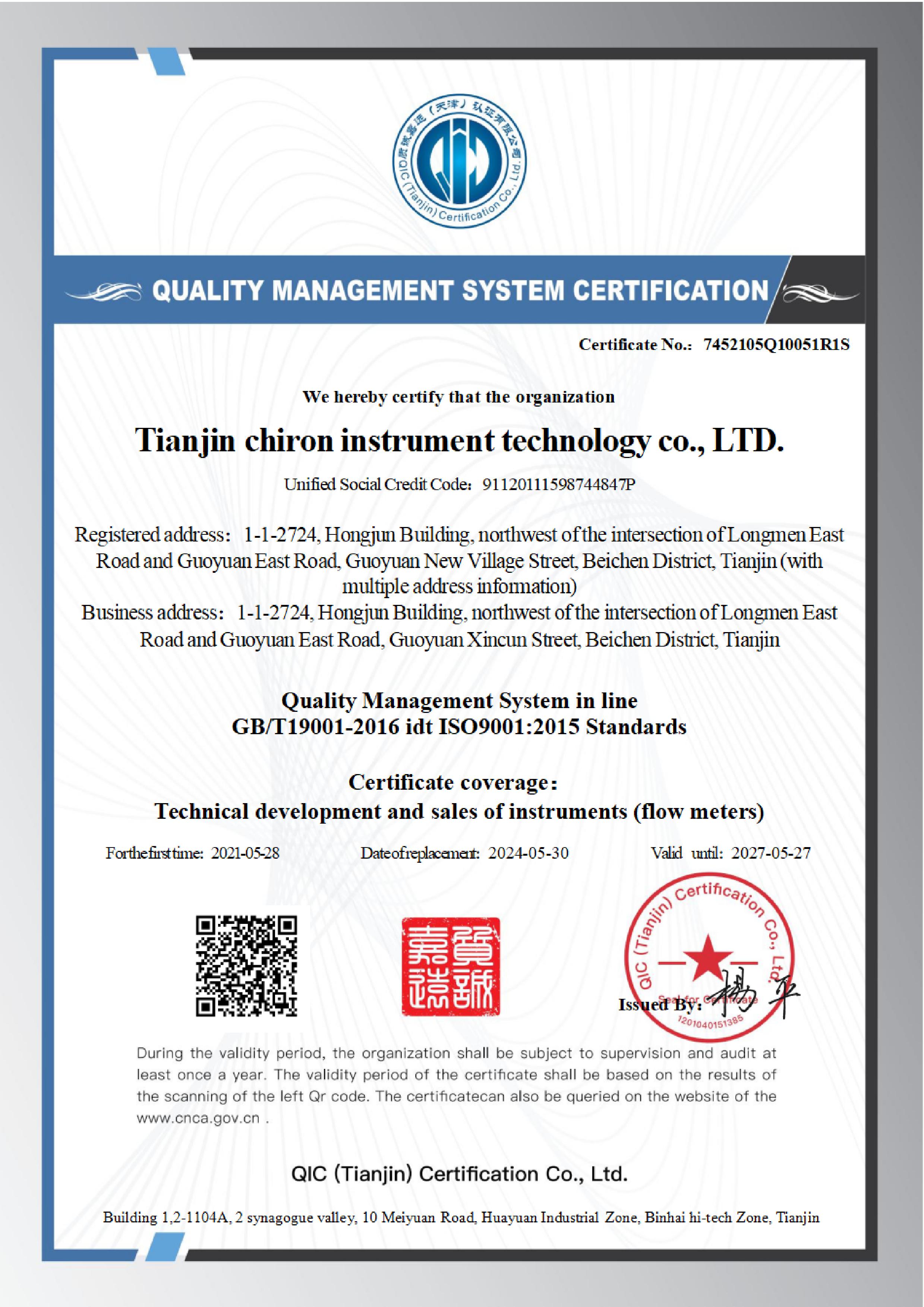 質量管理體系認證證書
